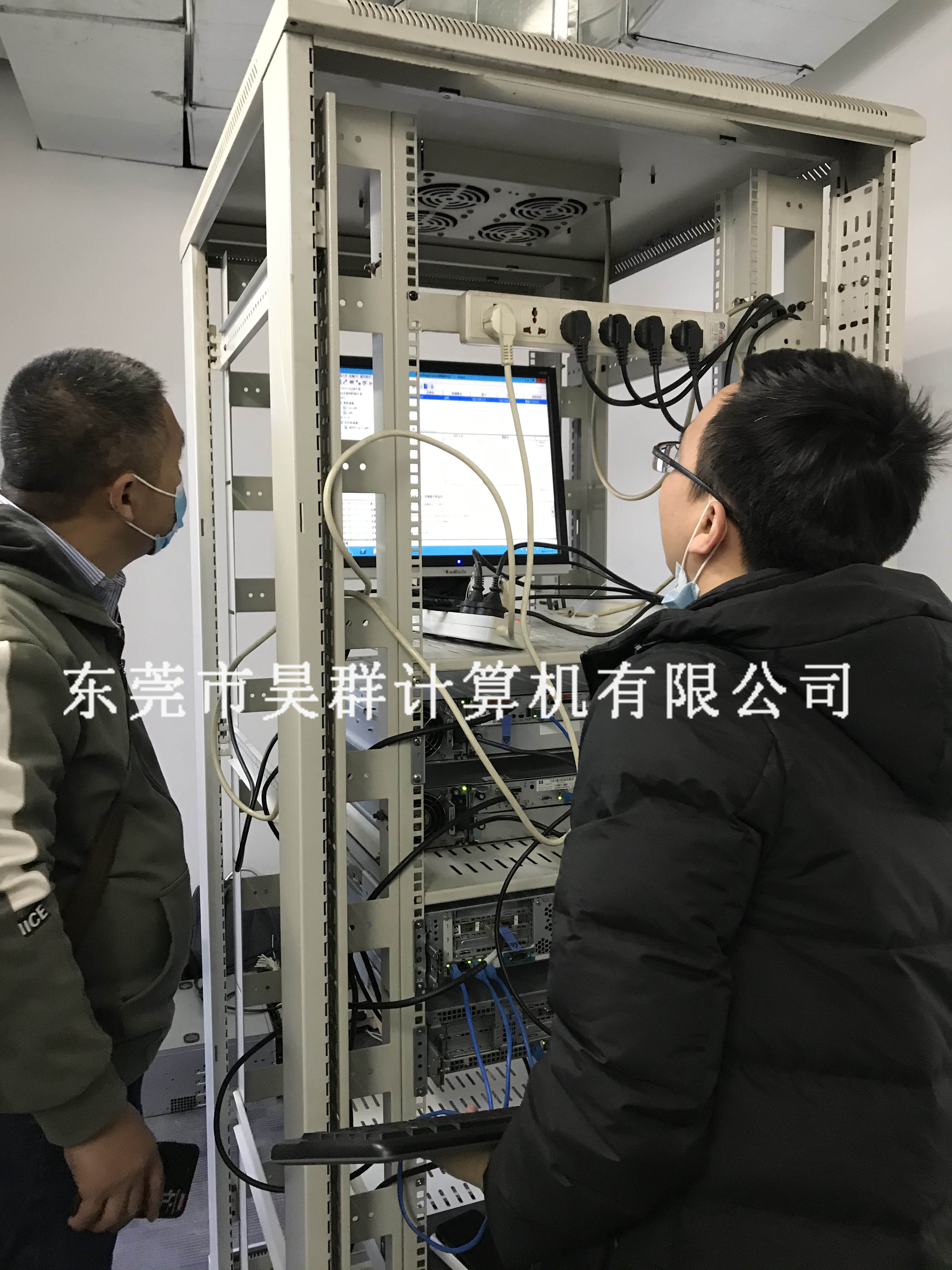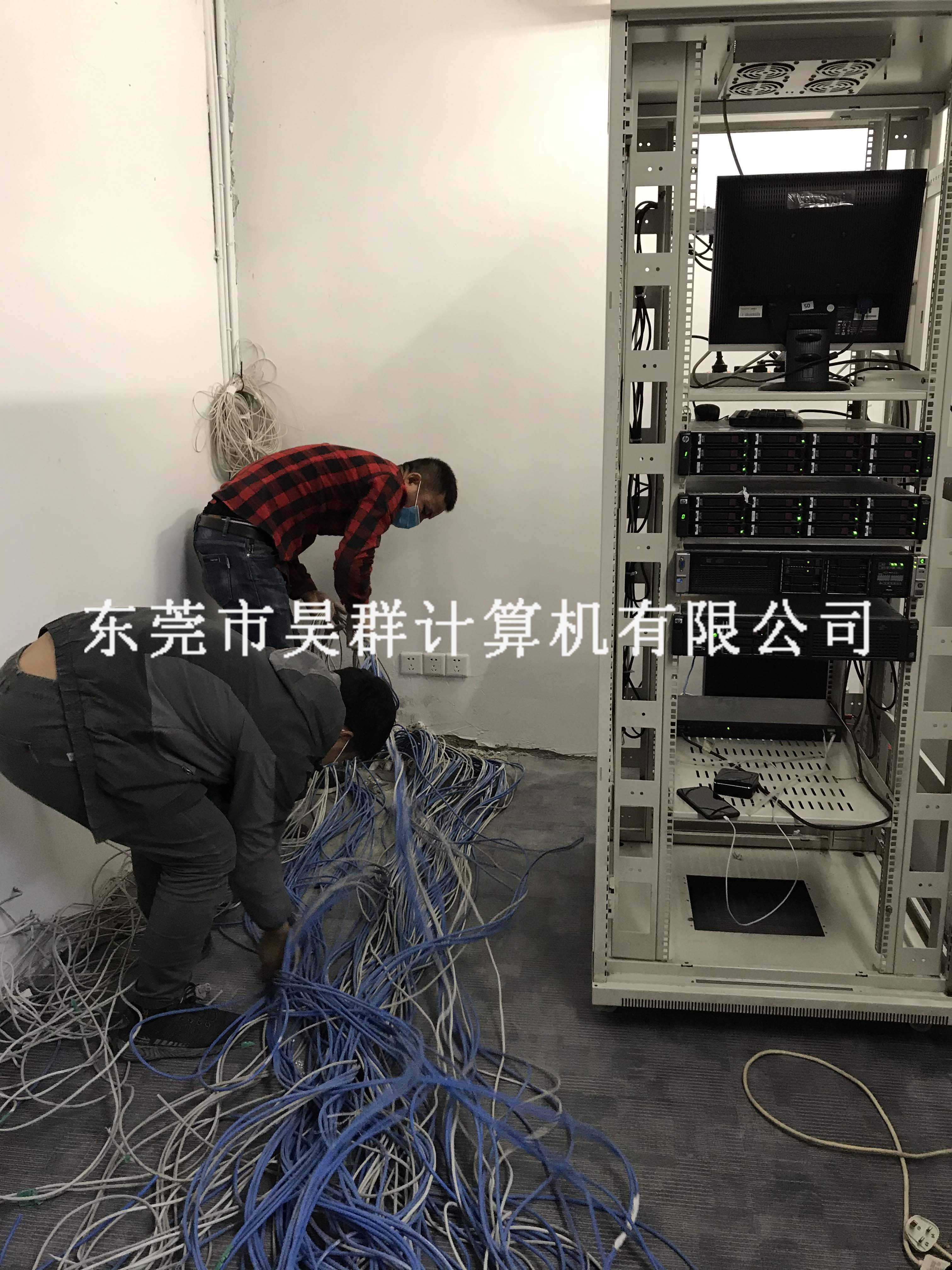 某用户办公地点搬迁,网络需重新规划布线及机房设备迁移。为了用户开年能尽快投入工作,我司技术团队加班加点服务,抢占时间。现场技术同事们专业熟练地安装服务器、存储、UPS、电话交换机、综合布线等。