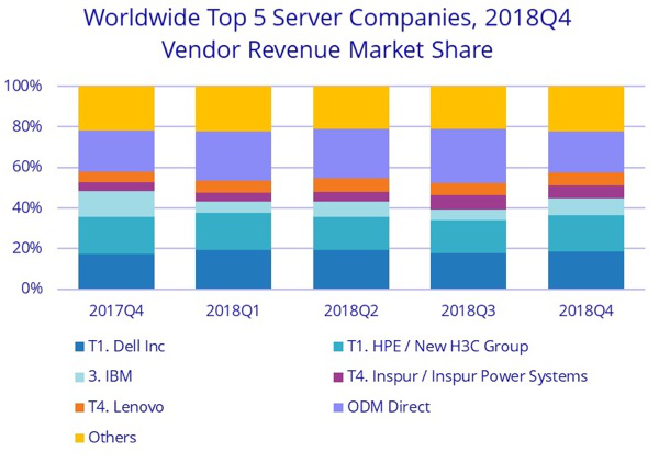 图. 服务器市场在过去的一年比较稳定,老牌领导者占据各自的位置
